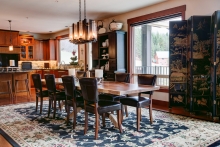 This custom made dining room table comfortably seats 10-12 people. Our tables are not only designed for elegance but they are very functional, too.